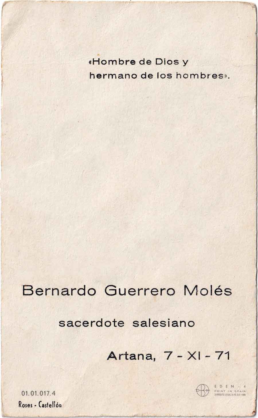Record de la consagració sacerdotal de Bernardo Guerrero Molés, sacerdot salesià. Diumenge 7-XI-71.
