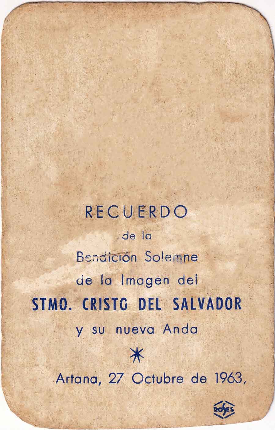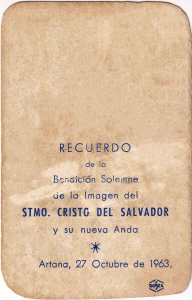 Record de la benedicció solemne de la imatge del Santíssim Crist del Salvador, i la seua peanya. Diumenge 27 d’octubre de 1963.