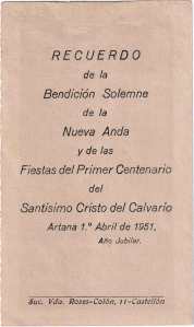 Record de la benedicció solemne de la peanya i les festes del primer centenari del Santíssim Crist del Calvari. Diumenge 1 d’abril de 1951.