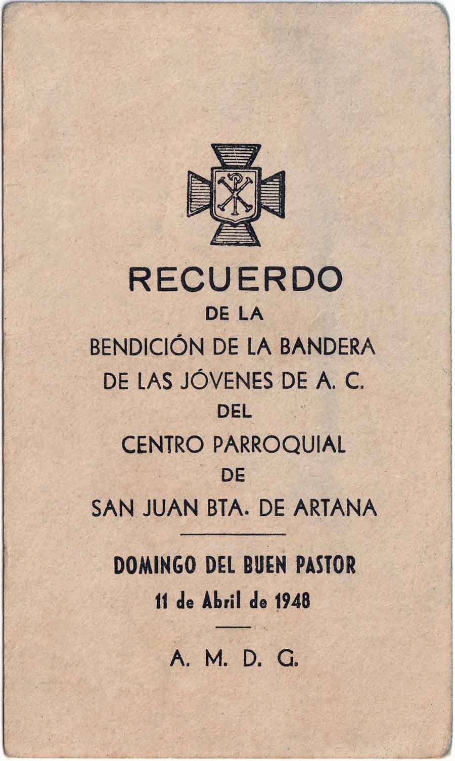 Record de la benedicció de la bandera de les joves d’Acció Catòlica. Diumenge del Bon Pastor, 11 d’abril de 1948.