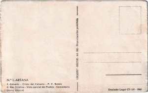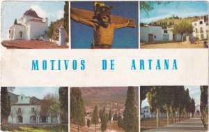 Postal “Motivos de Artana”. Nº 1: E. Calvario – Cristo del Calvario -P. C. Sotelo – E. Sta. Cristina – Vista parcial del pueblo – Cementerio (fotos Català). 1968.