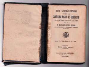 Breves y afectuosas meditaciones sobre la Santísima Pasión de Jesucristo para todos los días del mes, del P. Juan María de San Ignacio. Publicat a Santander per l’editorial El Pasionario.