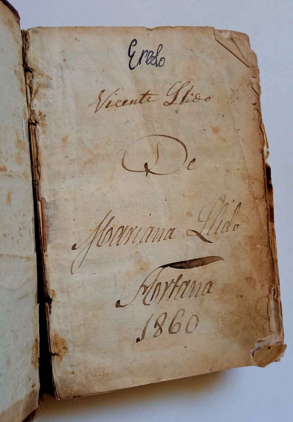 En primera plana, escrit a mà: “Vicente Llidó de Mariana Llidó. Artana 1860”.