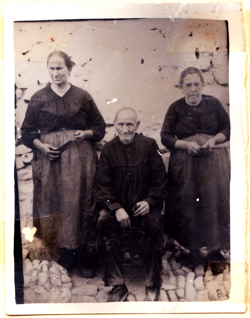 Els avis de Mn. José Herrero ‘Peneque’: Maria Vilar Gallart i Joan Vilar, i la veïna Consolación, cap a l’any 30 al carrer Pastora. A meitat dels anys 60 el sociòleg Pierre Bourdieu escriu sobre el rebuig dels llauradors a la fotografia en les zones rurals mediterrànies (“El campesino y la fotografía”, en El sentido social del gusto. Ed. Siglo XXI, 2010), tret de la seua funció solemnitzant esdeveniments com bodes, comunions o serveis militars. El relat d’esta imatge escenifica la situació: l’home no volia fotografiar-se, de manera que va haver de participar la veïna per a que fóra una cosa més “social”. Per la seua part, Consolación vivia amb tres germans a la casa de dalt. Un dels germans havia sigut frare, però ho va deixar i, ja major, el van casar amb una dona acomodada de Benifaraig, a l’Horta de València. El matrimoni no va anar bé i es van separar, però a Benifaraig també hem sentit contar la història d’un home d’Artana. Feu atenció a l’empedrat del carrer.