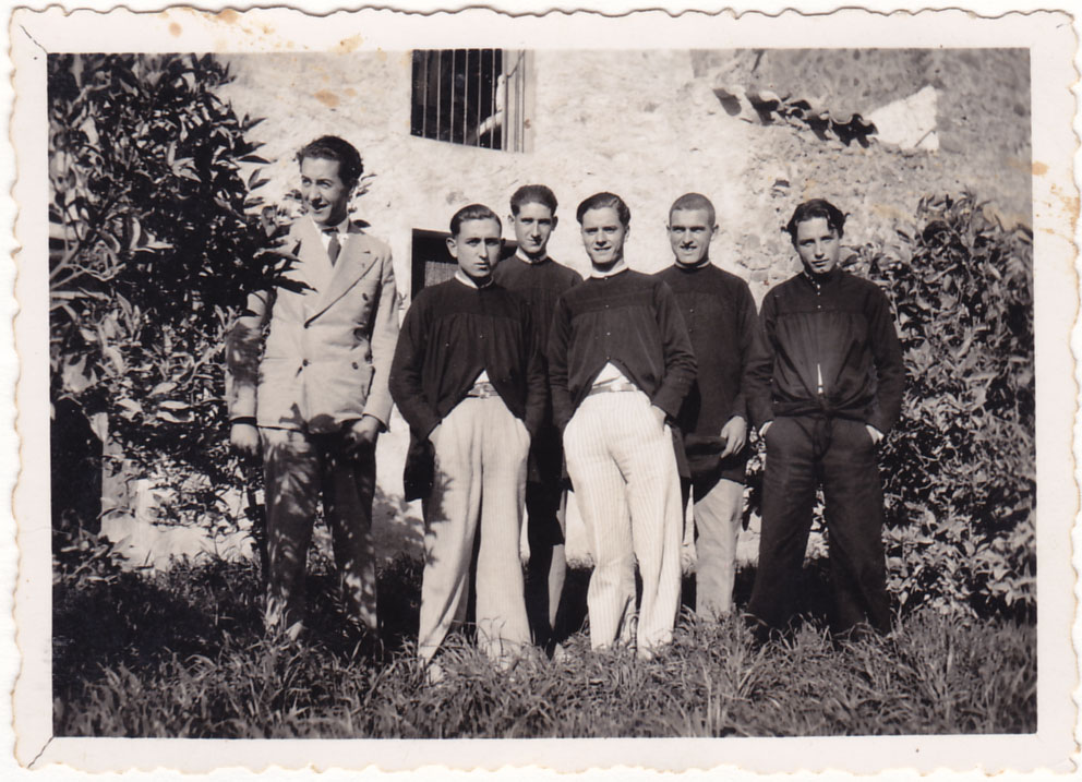 L’any 36, el tio José María amb una colla d’amics. A la imatge res no fa preveure que anara a esclatar una guerra. El de l’esquerra podria ser Emílio Álvaro, el segon el tio Pansa, el quart Joan de Benardo, José Mª Cabañes i José Ramona.