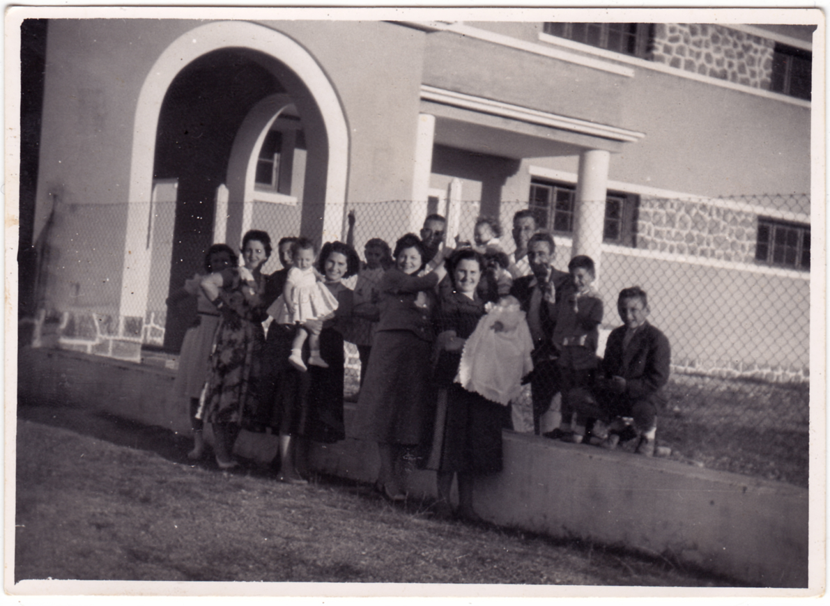 Una foto de 1957. Reconeixem Cristina i Dolores amb les respectives filles al braç, i entre elles Elvira Navarro. A l’altre costat de la valla, Vicent i Juanito, els homes d’Elvira i Dolores.