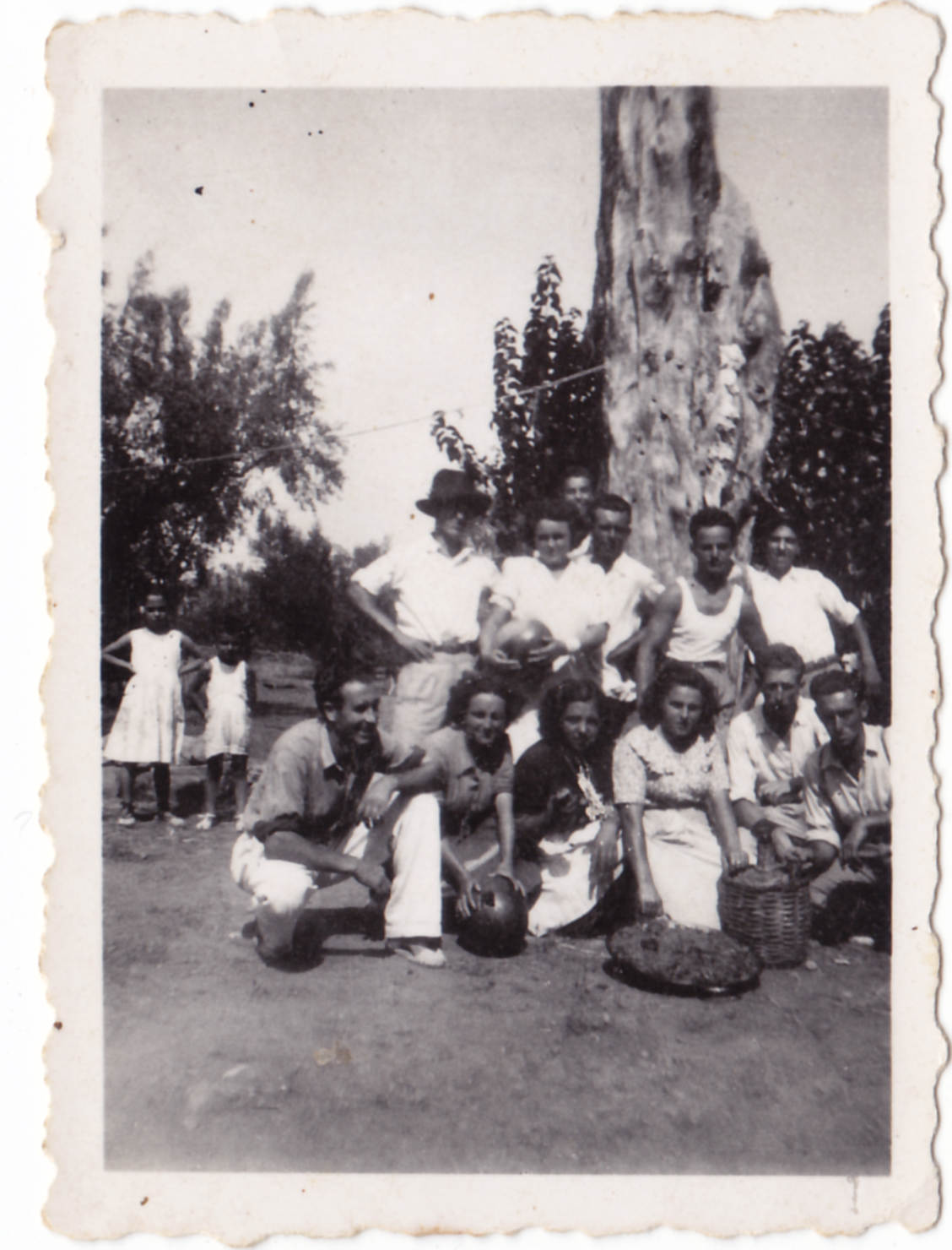 Una gran colla d’amics i amigues a la fira de Santa Cristina i a principi dels anys 50. Darrere Alfonso Vilar (germà de Conxita ‘Roquet’), Marí Carmen (de les ‘catalanes’), Vicent Ramon ‘de Severino’ (que després d’una llarga malaltia dels pulmons se’n va anar a Amèrica amb mosen Benjamín i va morir en un accident de cotxe), Fina ‘Músic’, Marí ‘Peneque’ i Manolita (filla del Secretari). Davant, Virginia Traver (‘Coloma’), Lola Macián (una xica de Tales), una jove de Nules (que tenia carnisseria davant de ca Virginia i a qui deien ‘la botifarrera’ -que també va morir jove) i José ‘Cafundo’ (o José ‘Amplet’).