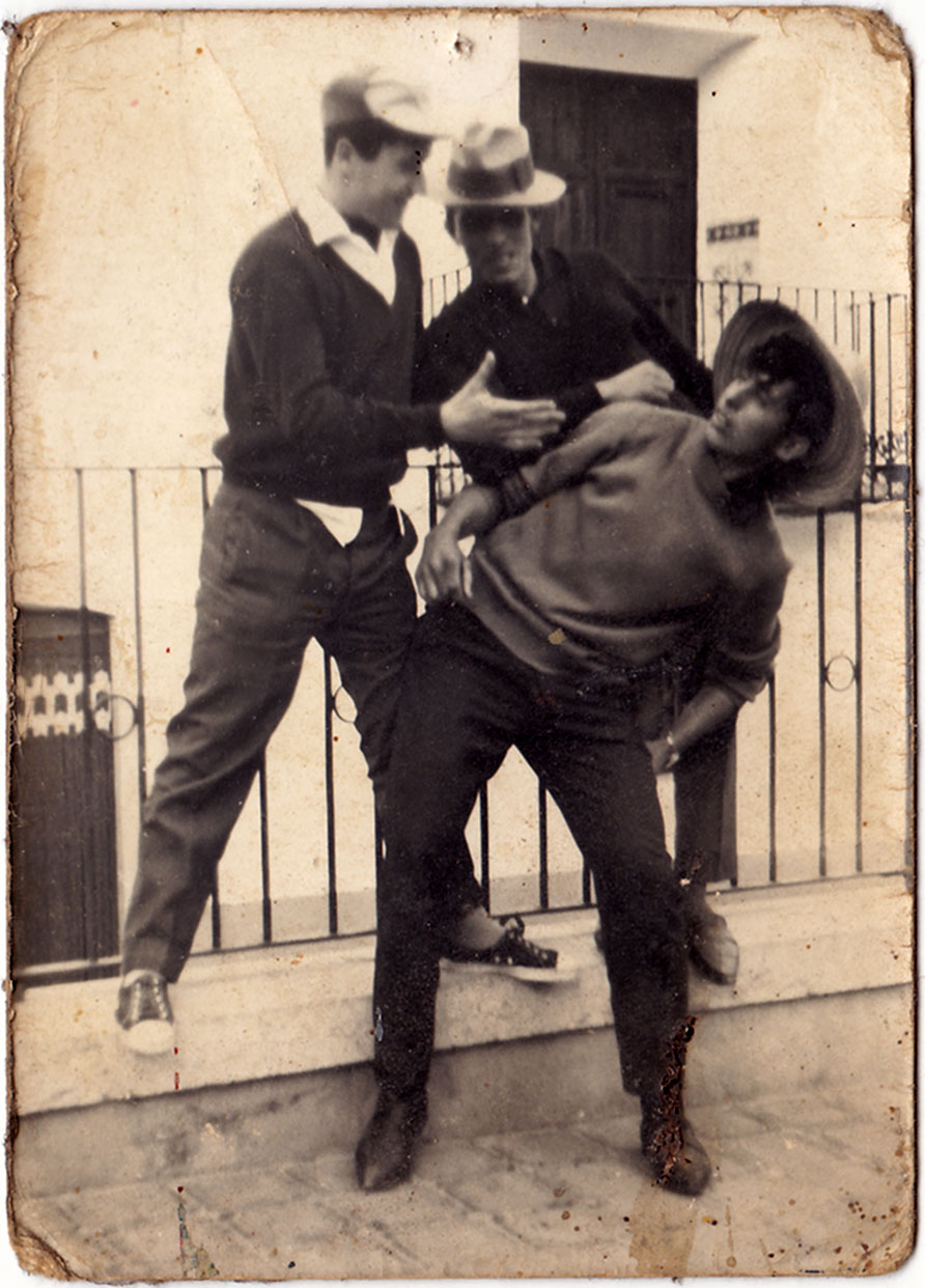 Evidentment es tracta d’alguna festa on els amics posen amb testos i plantetes. D’esquerra a dreta i de dalt a baix: un desconegut, Francisco Roc, Pepe Solo, Vicente Vilara i Eladio. Davant, un desconegut i José Sorribes.