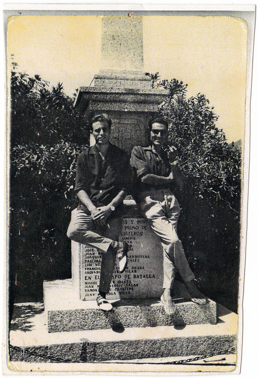 Un poc més cap ací: posant contra la Creu dels caiguts (on ara està l’ambulatori): José el Barber i Eladio.