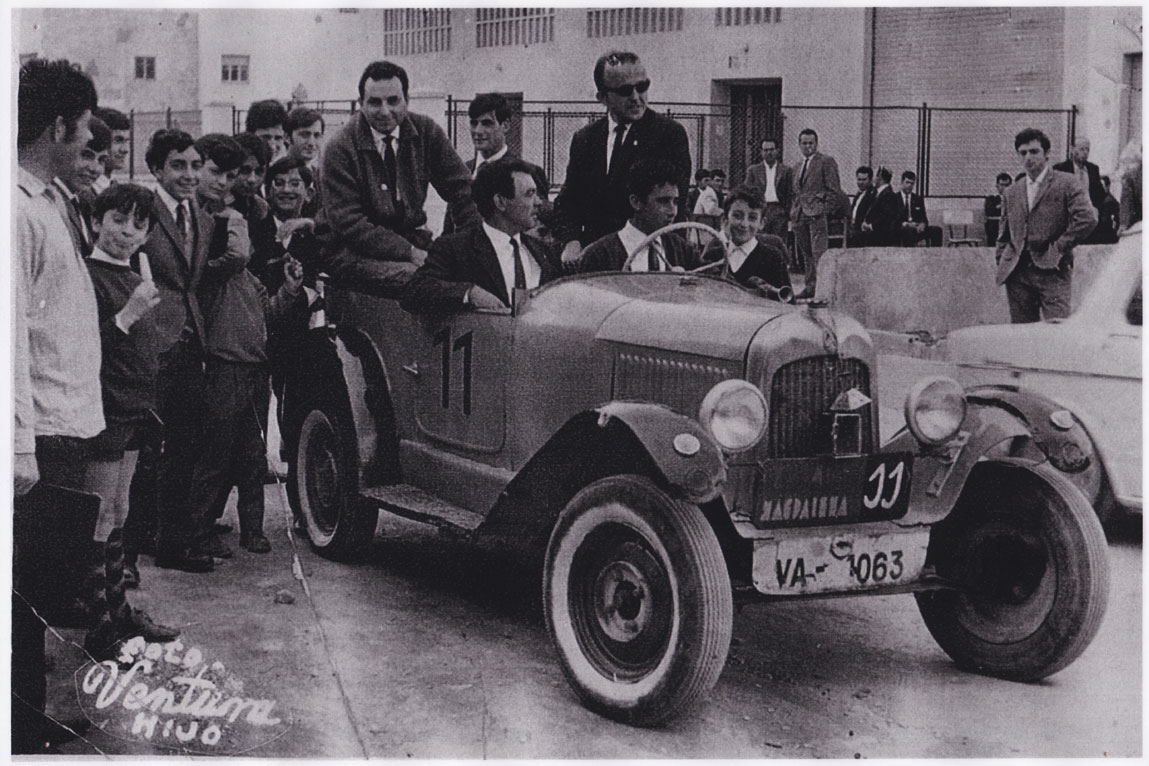 De festa a la carretera. Signa la foto “Ventura Hijo”. Sobre l’espectacular descapotable reconeixem a José Serreta, Chacola i Pepe Solo, i entre el públic als xiquets José Juan de Carbonero (amb jaqueta i corbata) i a Pascual el Serri. Darrere tenen a Benjamín de Colàs.