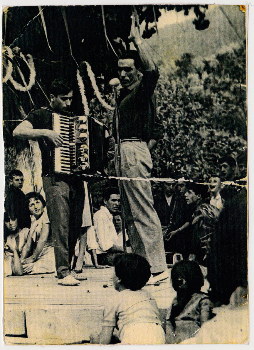 Arreu de les festes José Bastero amenitzava amb el seu acordió; el vocalista ací és Eladio Silvestre —pare d’Inés, a qui devem la informació—, en una desconeguda faceta de cantant melòdic. El lloc pareix ser l’Ermita.