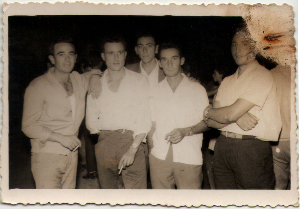 29. Pepe Panera, Avelino, dos desconeguts i Alonso, en una nit de festa. El cigarret era majoritari, com es veu.