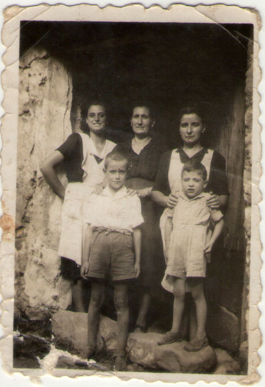 6. Una guapíssima Doloretes de Bresquilla, la seua sogra Cristina Casanova i Teresa Marí Peregrina. El xiquet de l’esquerra és Alonso, a l’altre no el coneixem, suposem que serà fill de Teresa. Estarien en algun pati o corral amb poc de llustre.