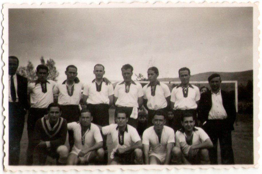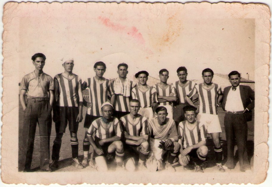 2- Equip de futbol d’Artana l’any 36, mesos abans d’anar-se’n a la Guerra. Podria ser fora d’Artana, perquè el camp estava aleshores a la partida de l’Artiga, en una vinya familiar de la família Cabañes, i no hi havia cases a la vora (una altra imatge de l’equip es pot veure a Joan Cabañes Ibàñez, una vida truncada -1913-1937; fins i tot es reconeixen les mateixes samarretes). Per jugar fora anirien en bicicleta o fins i tot a peu! També és interessant observar que es trobaven en el moment més enconat del conflicte polític, en plena República, però en el mateix equip jugava gent de dretes i d’esquerres. Possiblement per a ells no era imaginable ni necessari lliurar una guerra civil.