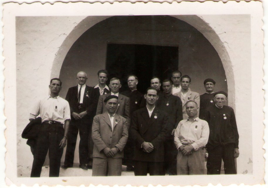 6- Alguns prohoms locals davant del poble. Sabem que alguns d’ells es van oferir voluntaris per anar a la División Azul, però va haver canvis en el curs de la guerra i no van arribar a mobilitzar-los.