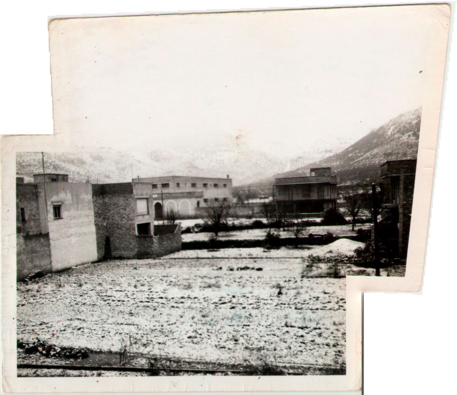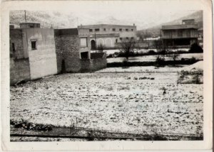 37-38- Unes imatges molt curioses d’una nevada en Artana. Es veu el flamant Grup Escolar i la muntanya blanca. Veiem una casa en construcció a la dreta i els horts en producció que anirien desapareixent acceleradament fins arribar al creixement actual. Cal recordar també que esta zona era la més gelada del terme, amb una diferència de molts graus (per dalt o per baix) respecte de la de dins del poble. És zona inundable, amb la qual cosa es trencava amb el seny constructiu que havia imperat en Artana des de feia segles. És difícil no pensar en açò quan el casc històric està buit, la població no creix però el casc urbà s’ha multiplicat per tres.