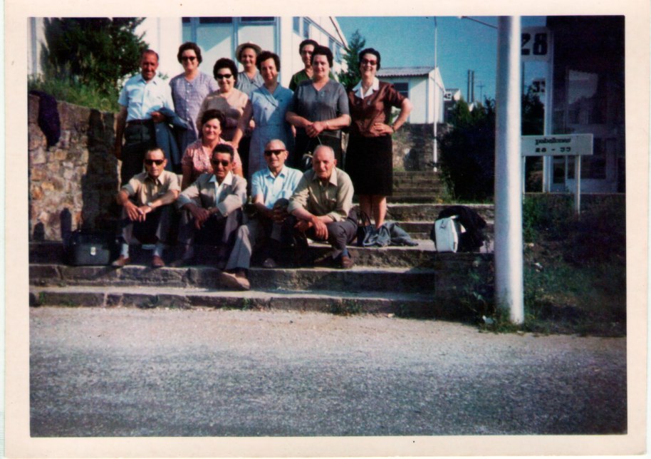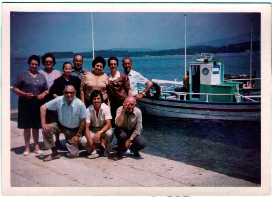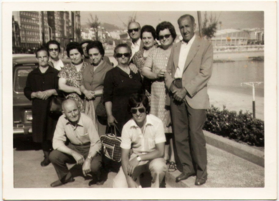 47- Una altra novetat en la societat artanenca i general: els viatges accessibles. Ací estan en una zona de platja. Coneixem a penes a la mare de José María el Ferrer, a les germanes de José Caranyo, a Lolita Pobila i al tio Barros. Ajupit davant de tots, l’únic jove és José Luis, a qui hem vist abans en la primera boda.