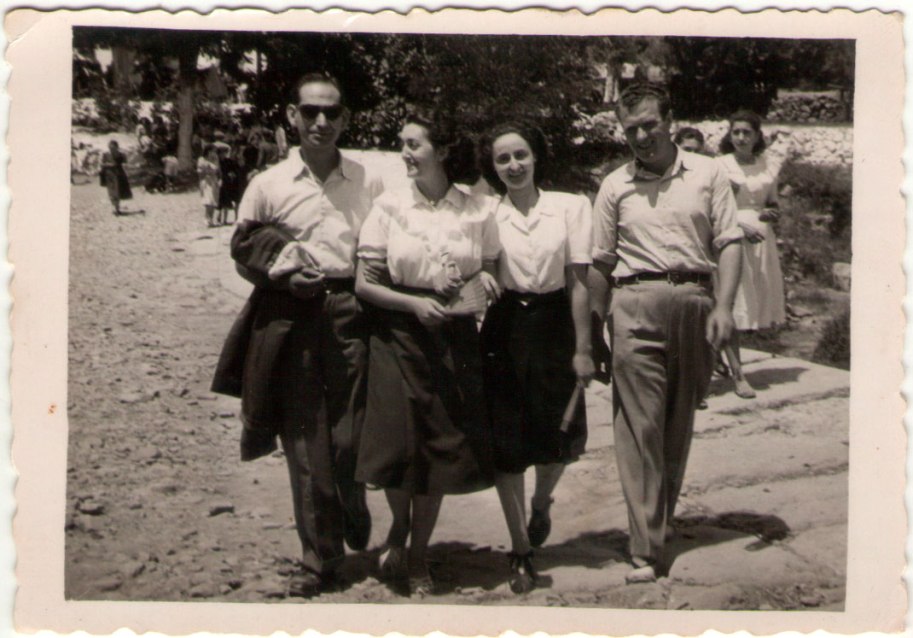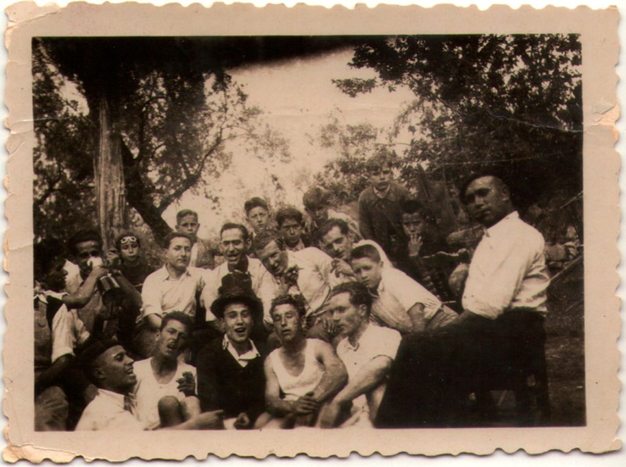 21- Es coneix que els joves eren aficionats a les excursions. Ací estan les xiques, carregades de davantals, molt comboiades per xics; només coneixem, de nou, a Teresa, i, a la dreta, amb el cap tallat, el que podria ser Vicentet de Menuda.