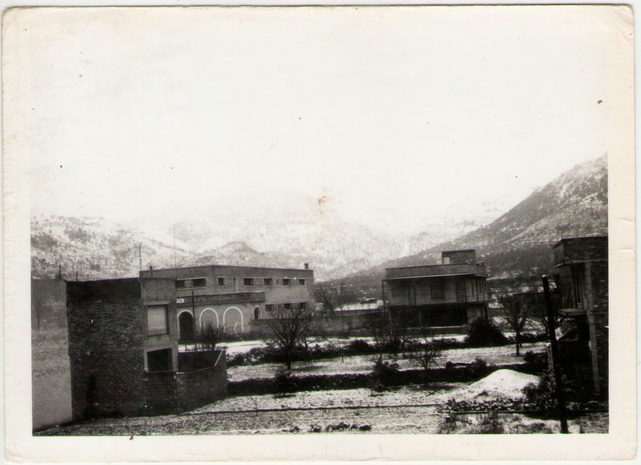 37-38- Unes imatges molt curioses d’una nevada en Artana. Es veu el flamant Grup Escolar i la muntanya blanca. Veiem una casa en construcció a la dreta i els horts en producció que anirien desapareixent acceleradament fins arribar al creixement actual. Cal recordar també que esta zona era la més gelada del terme, amb una diferència de molts graus (per dalt o per baix) respecte de la de dins del poble. És zona inundable, amb la qual cosa es trencava amb el seny constructiu que havia imperat en Artana des de feia segles. És difícil no pensar en açò quan el casc històric està buit, la població no creix però el casc urbà s’ha multiplicat per tres.