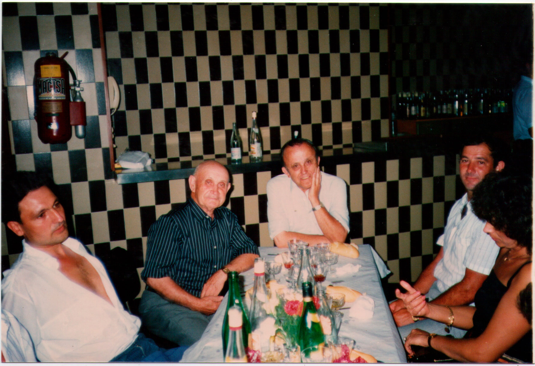 46- Un altre convit: vi abundant i esperant les postres. Només coneixem a Pasqualet de la Replaceta i a José Chacola.