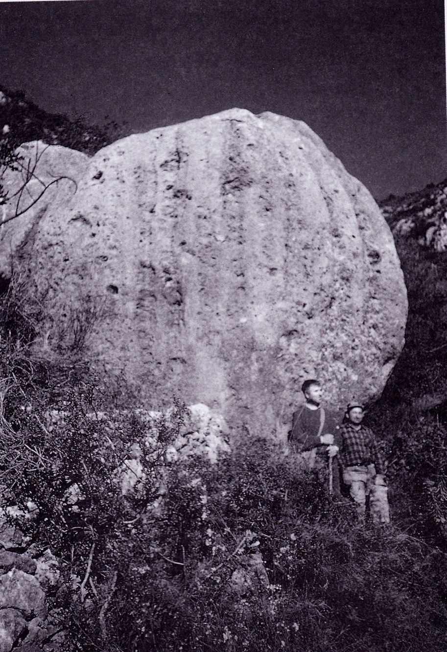 En este tercer ámbito, fuimos también a visitar las cuevas sepulcrales de El Tronc y de El Tinent‘18; delante de esta última se puede observar, en la parte superior de una enorme roca, un bacino de forma semioval, especie de fosa circular con un diámetro de 0’90 m x 0’80 m de ancho y 0’20 m de hondo, labrada a mano, dentro de la cual, según el análisis químico hecho por el Prof. Fernando Latre, se ha hecho fuego. Este bacino ligeramente ovalado es casi idéntico a otro de 1 m x 0’80 m de diámetro y 0′ 19 m de hondo, labrado sobre una roca de El Castell de Artana, muy cerca de otro asentamiento ibero con necrópolis eneolítica (parte de cuyos hallazgos se pueden contemplar también en el Museo de Borriana). El solar del primitivo poblado ibero de El Castell d’Artana sirvió de base a un asentamiento romano, transformado posteriormente en castillo por árabes y usado por los templarios como fortaleza, hasta que fue dinamitado por decisión del general liberal Borso di Carminati durante la última guerra carlista.