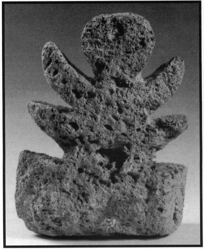 (Fig. 1). Se trata de una pieza tallada en piedra calcárea, que representa una figura antropomorfa de esquematismo ancoriforme con los brazos en eje semicircular, abiertos hacia lo alto, como claro símbolo de petición u oración (Mesado, Roca, 1997; Mesado, 2001).