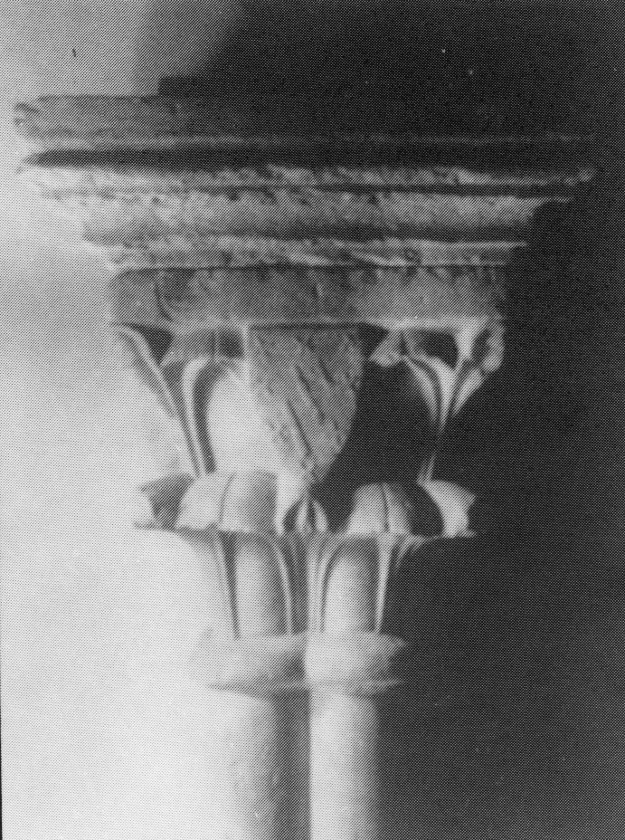 El capitell: És de dibuix simètric, senzill però esvelt. La seua meitat inferior està decorada amb grups juxtaposats de fulles de flor de lis que s’obrin en volutes cap a l’exterior, posades als centres de les quatre cares i als angles del capitell. La seua meitat superior repeteix, amb menor desenvolupament, la temàtica vegetal precedent amb la novetat que s’hi superposa,en els centres de les quatre cares i sobre els grups flordelisats, un escudet amb les armes dels Romeu. El conjunt és coronat amb un fi i llis àbac. Alçada, 27 cm.