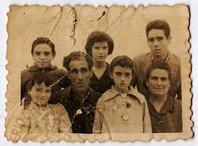 Mariano Soriano i la seua dona, Antonia López, rodejats de cinc fills. La imatge és, possiblement, de principi dels anys 60. La foto pareix treta d’un llibre de família.