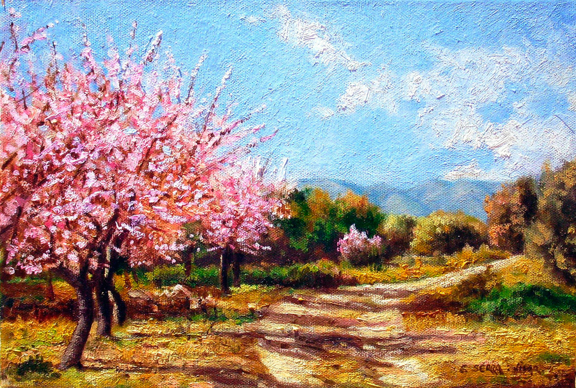 Ametllers en flor. Artana. Oli sobre llenç. 35×24 cm