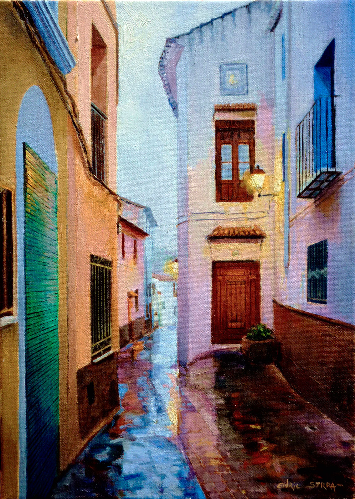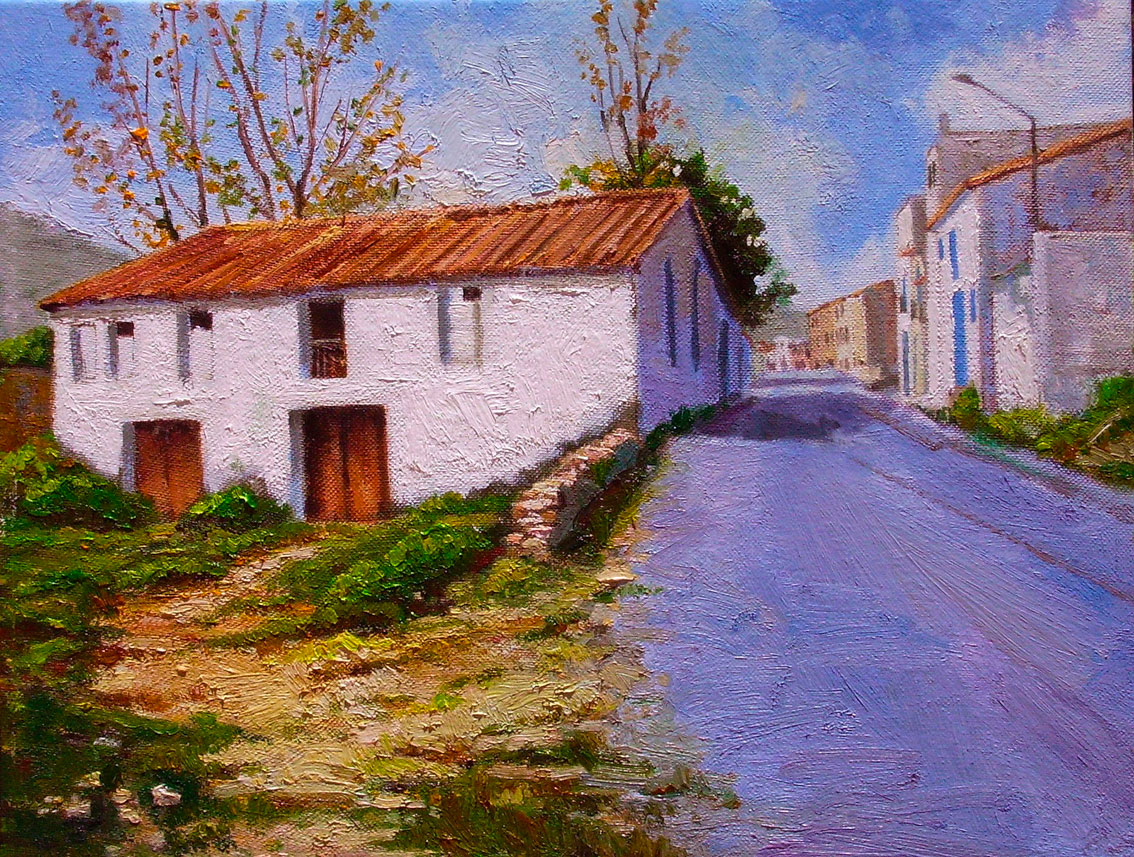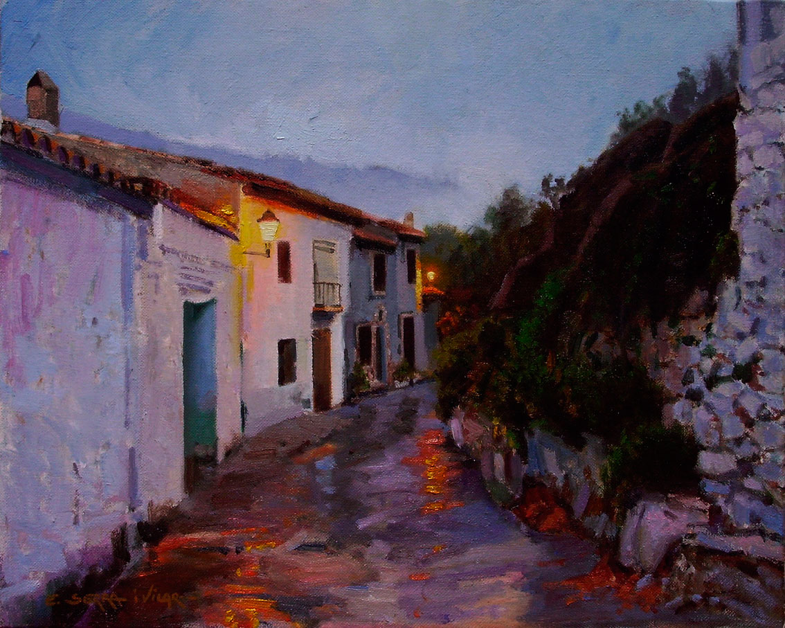 Artana. C. Ramón y Cajal una vesprada de pluja. Oli sobre llenç. 35×24 cm