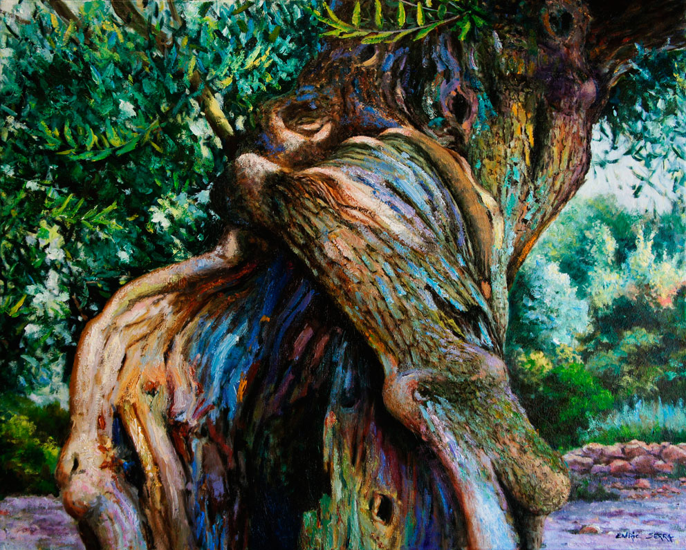 Gràcies , Enric , per regalar-nos aquesta llum mediterània , plena de vida , la mateixa vida que ens regalen els teus troncs d’olivera . No deixis d’inmortalitzar , amb la teva paleta plena de sensibilitat , la llum que ens dóna vida . Joan Crosas